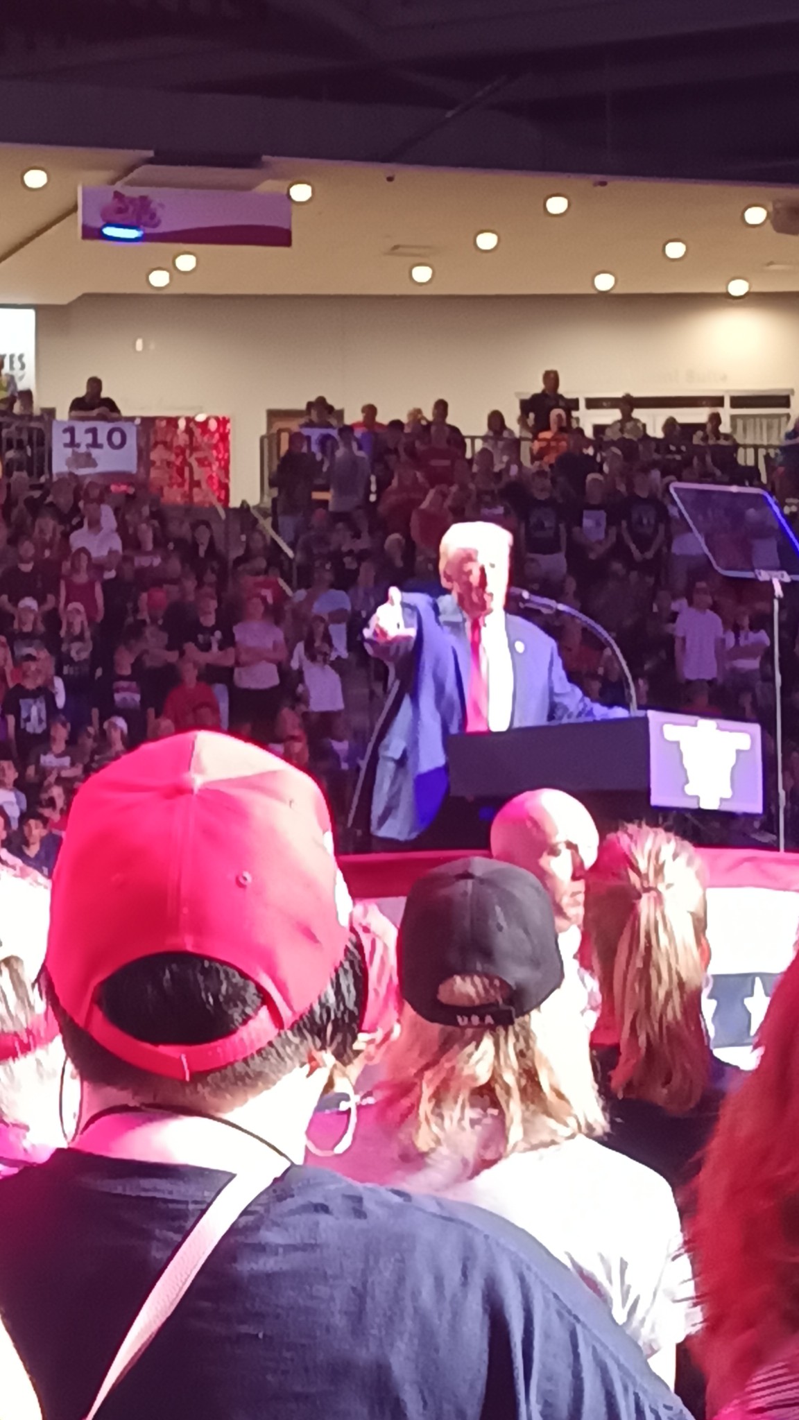 I'm a front-row Joe at the Trump rally in Indiana, PA! I'm close enough so that he looks directly at me while speaking. I stood with my whole family for about 13 hours to get to this spot and it was worth it. I love President Trump!